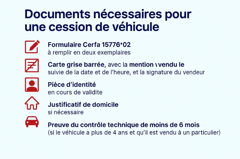 > Important : la déclaration doit être faite dans un délai de 15 jours maximum après la cession. Passé ce délai, le vendeur reste légalement responsable du véhicule… même si celui-ci ne lui appartient plus.